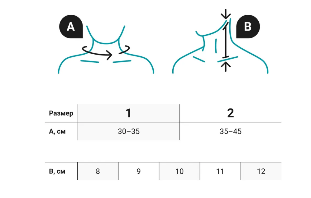 Для правильного выбора подходящего размера шейного бандажа для детей и взрослых Orlett БН6-53 необходимо сантиметровой лентой измерить окружность и высоту шеи (высота измеряется от угла нижней челюсти и до ключицы).