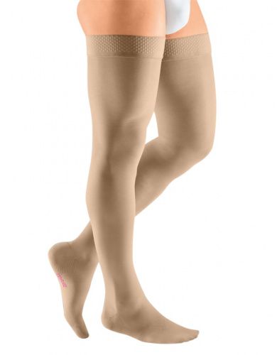 Компрессионные чулки mediven plus 1-ого класса компрессии с резинкой на силиконовой на широкое бедро основе как универсальное решение в лечении заболеваний вен.