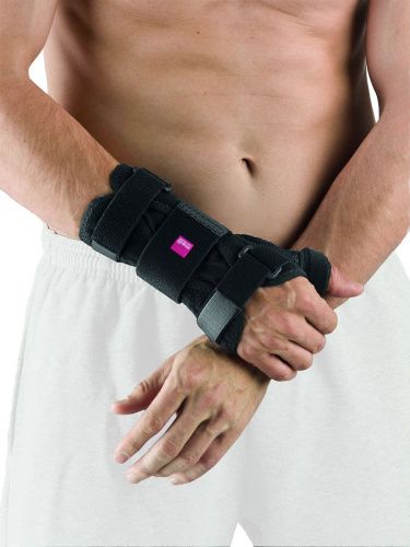 Шина Manumed T для лучезапястного сустава с поддержкой большого пальца – идеальное решение при лечении повреждений и заболеваний, когда требуется ограничить подвижность не только лучезапястного сустава, но и большого пальца кисти. Алюминиевая шина на ладонной поверхности имеет анатомическую форму. При необходимости ее можно моделировать индивидуально. Иммобилизация создает функциональный покой и ускоряет выздоровление. При этом сразу отмечается уменьшение интенсивности болевого синдрома.
